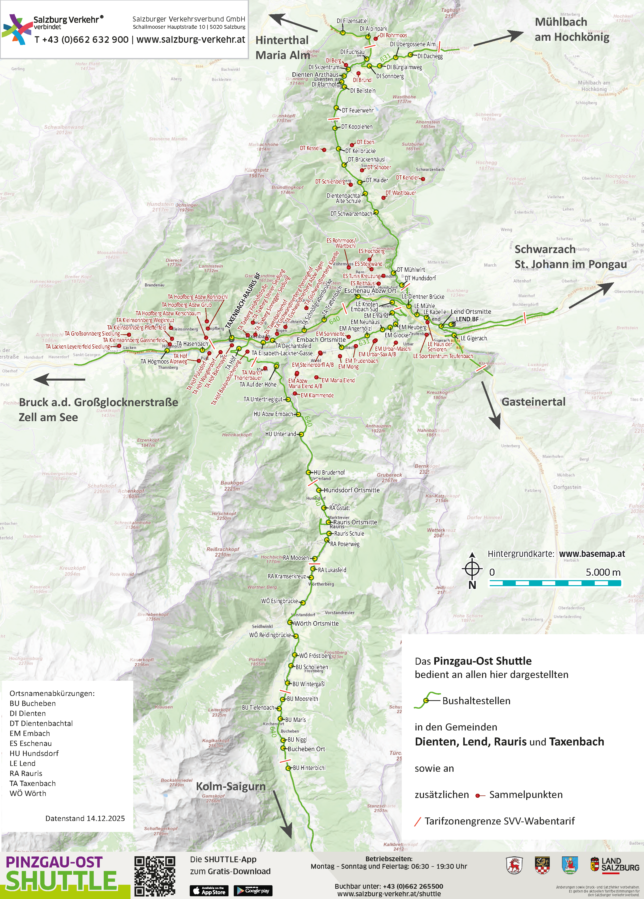 Das Pinzgau-Ost Shuttle ist zu folgenden Zeiten für Sie da: